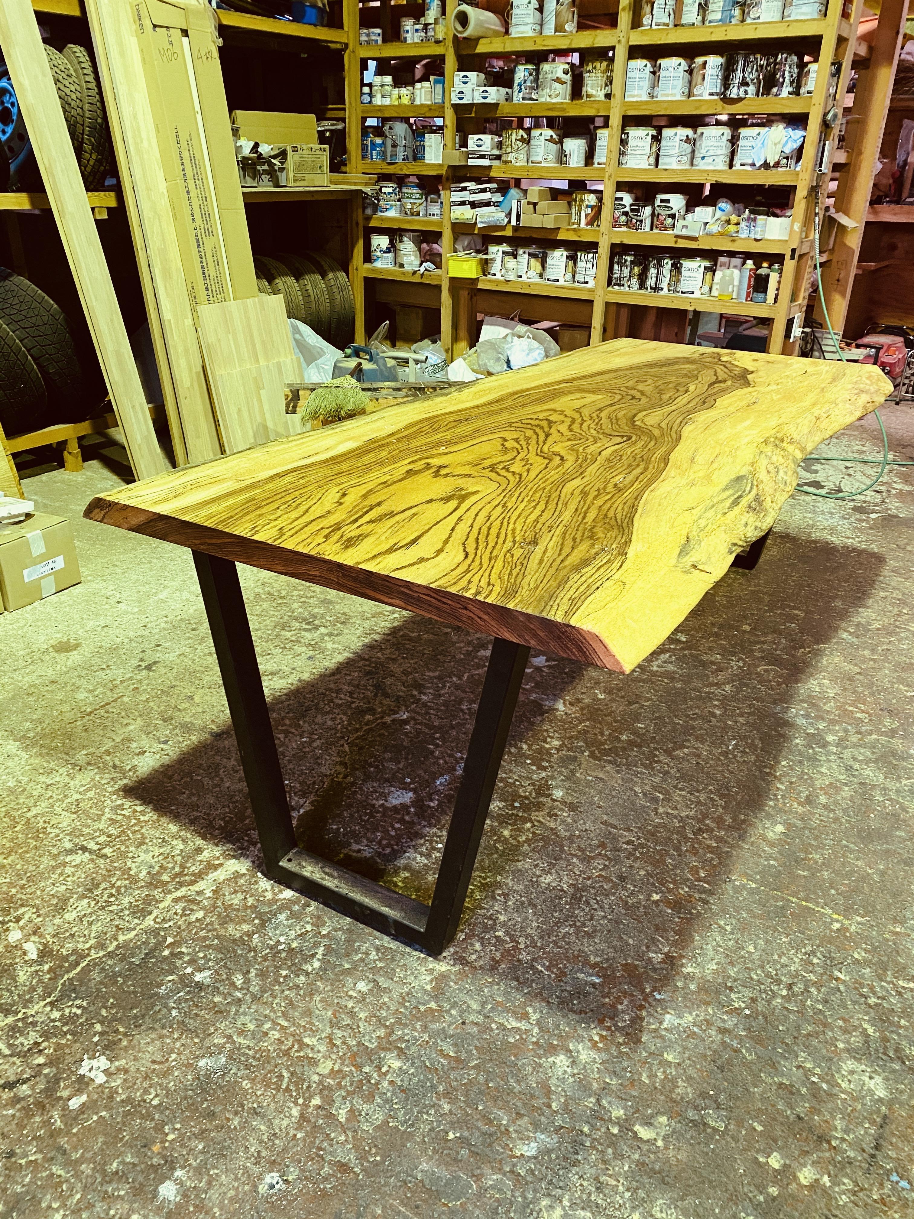 粛々とテーブル製作。 何度も何度も木を削っていき歪みを整えていきます。 最後に自然塗料...
