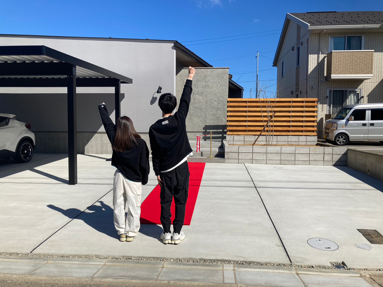 先日、金沢市でお引渡しを致しました レッドカーペットを歩いて頂き、まずはテープカット! そ...