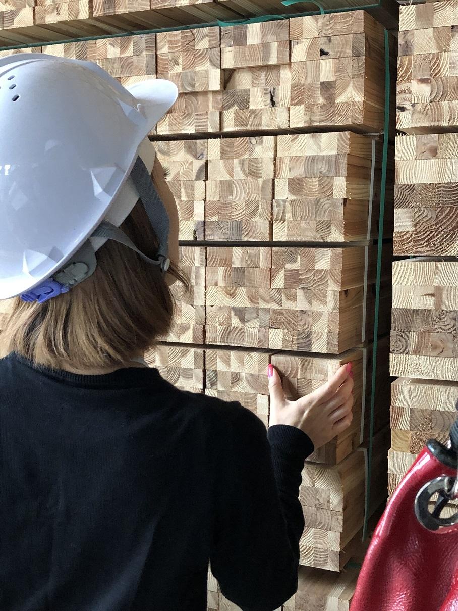 ちなみにトップの写真は、集成間柱の断面にかわいいー!と、うっとりするホウムラ。