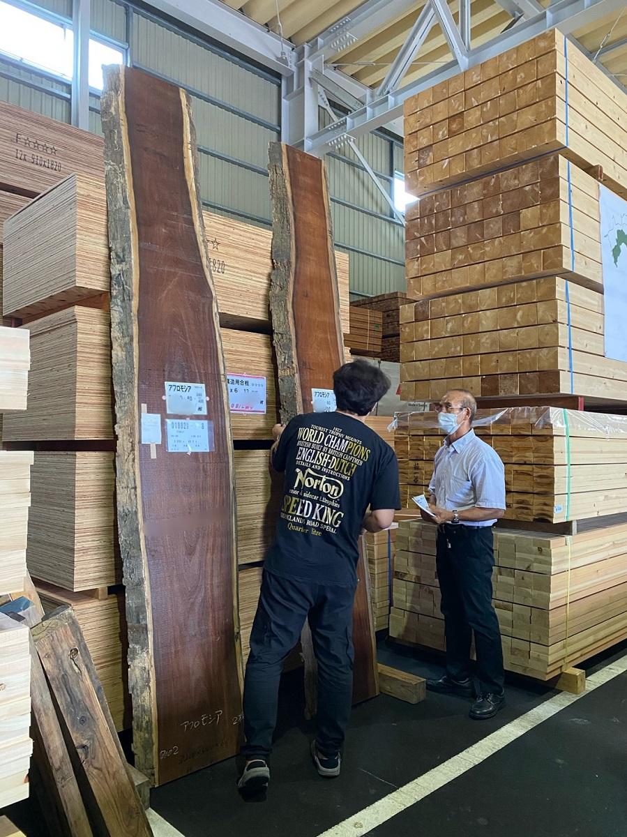 元大工の社長は木の知識も豊富で私たちに説明しながら品定め。