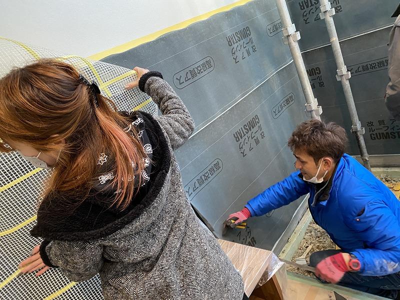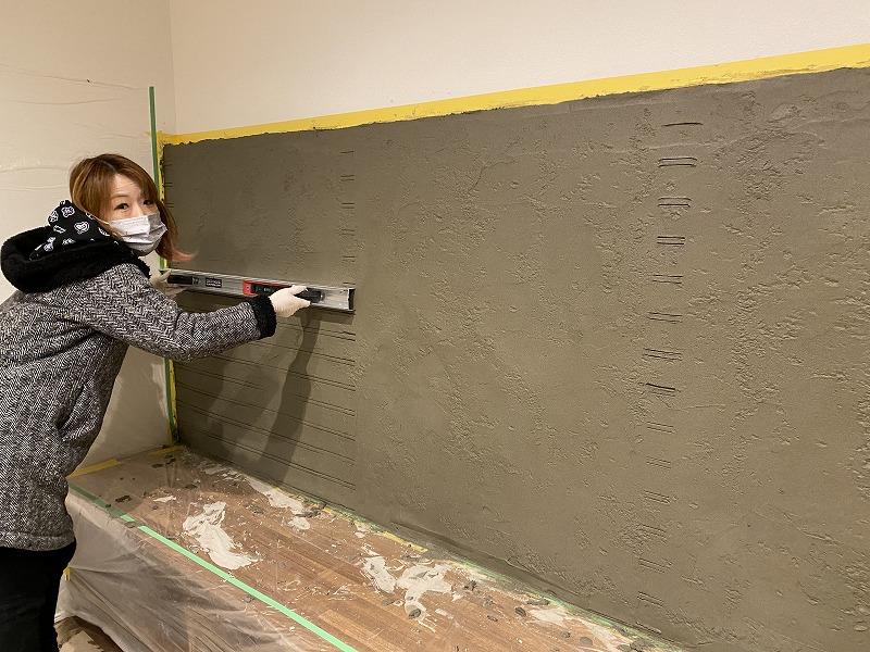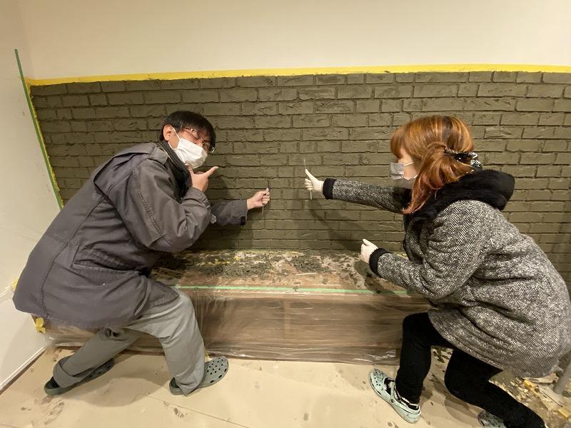 薪ストーブとテレビ面にデザインコンクリートでオリジナルレンガを作っていきます!
