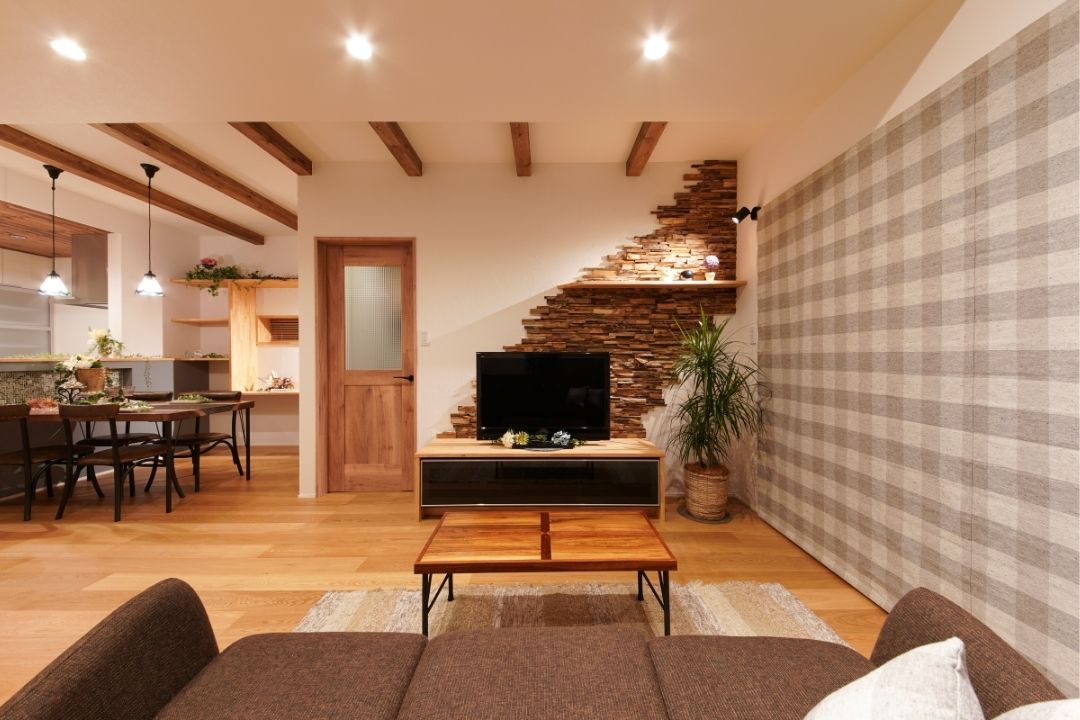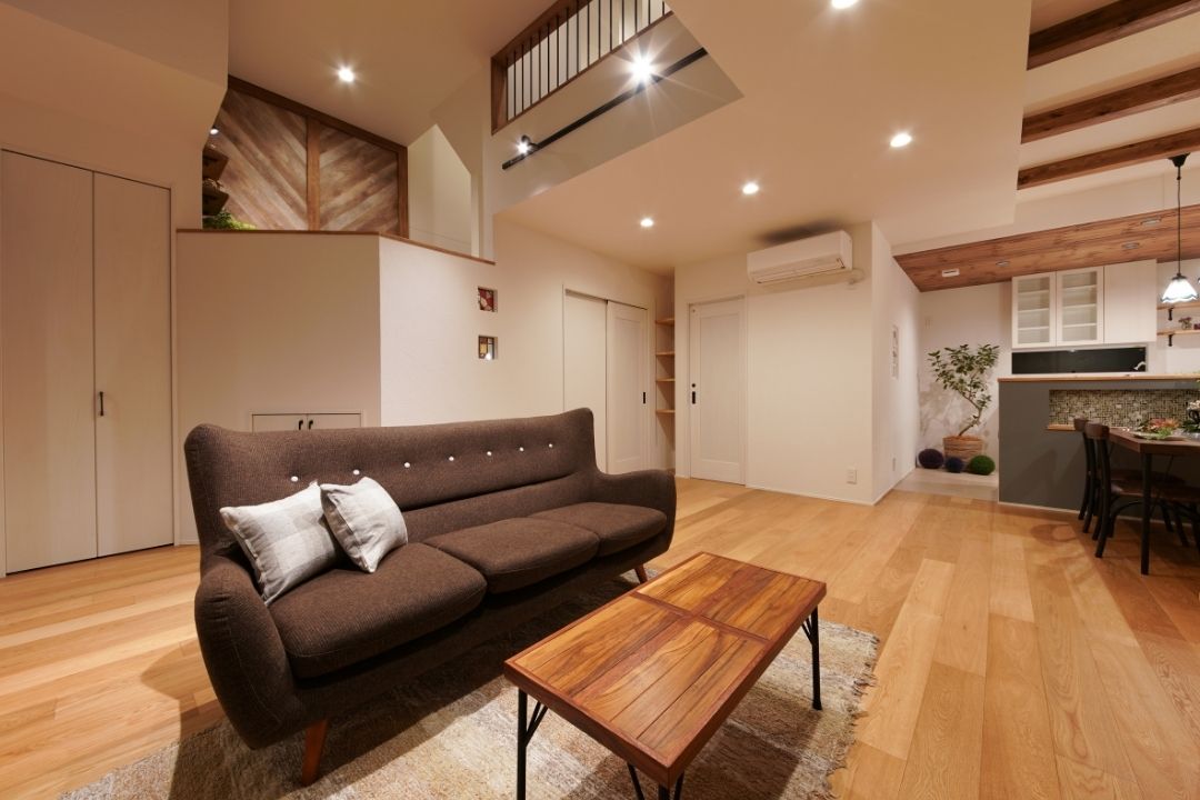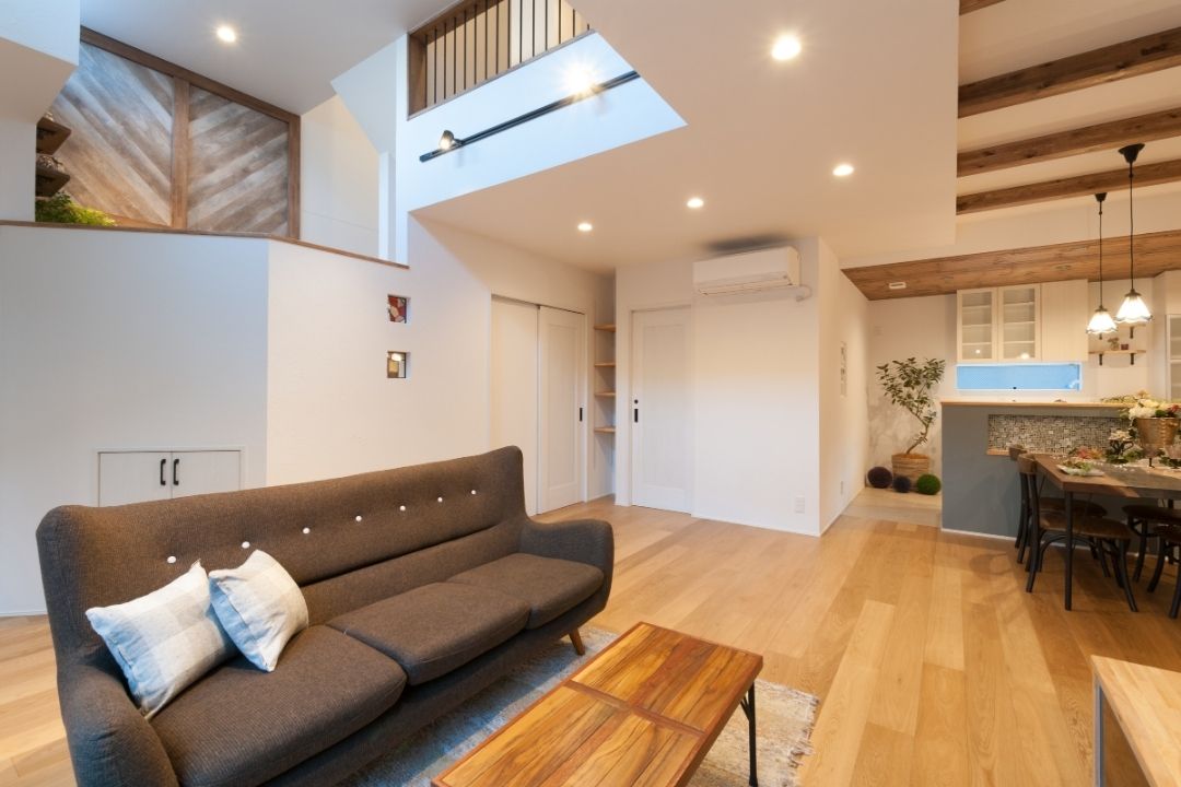 梁と格子が抜け感を演出し、リビングに広がりを感じさせてくれます。