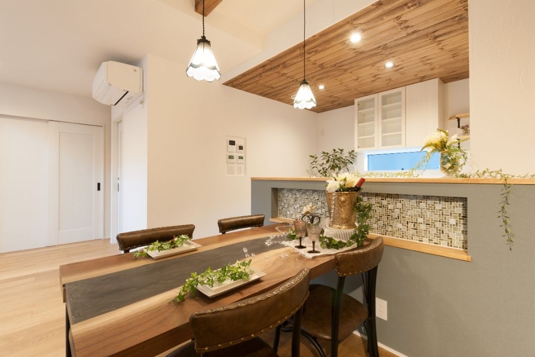 カフェのようなキッチンは会話が弾む楽しい場所に。