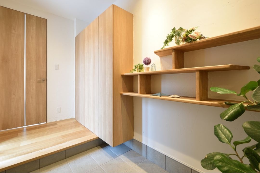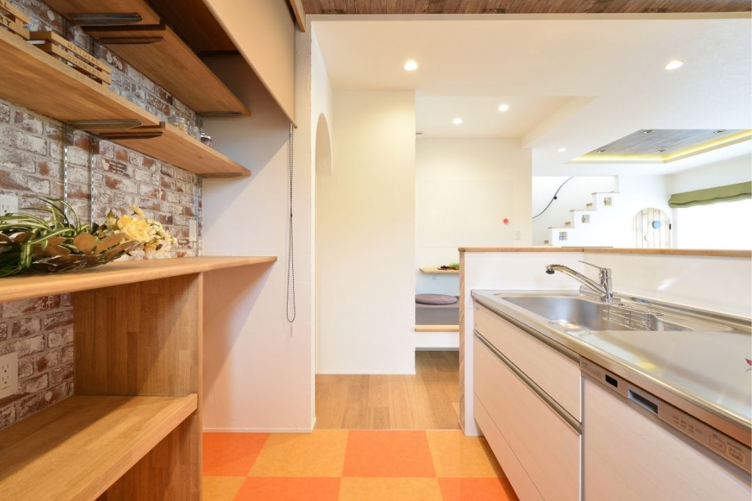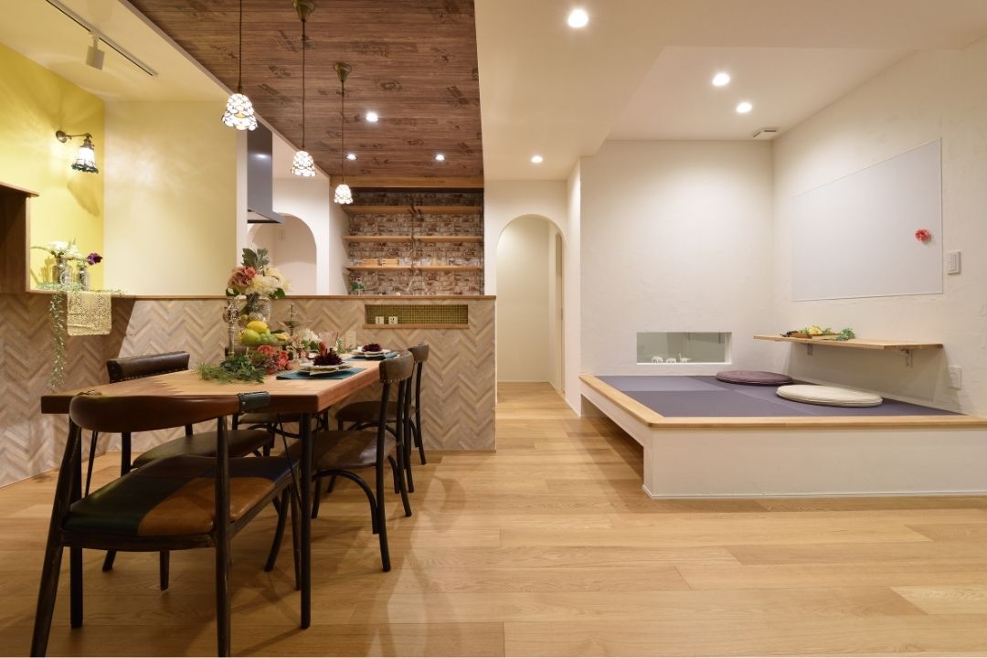 木目をベースに、色鮮やかなクロスが空間を彩る温度のある家。