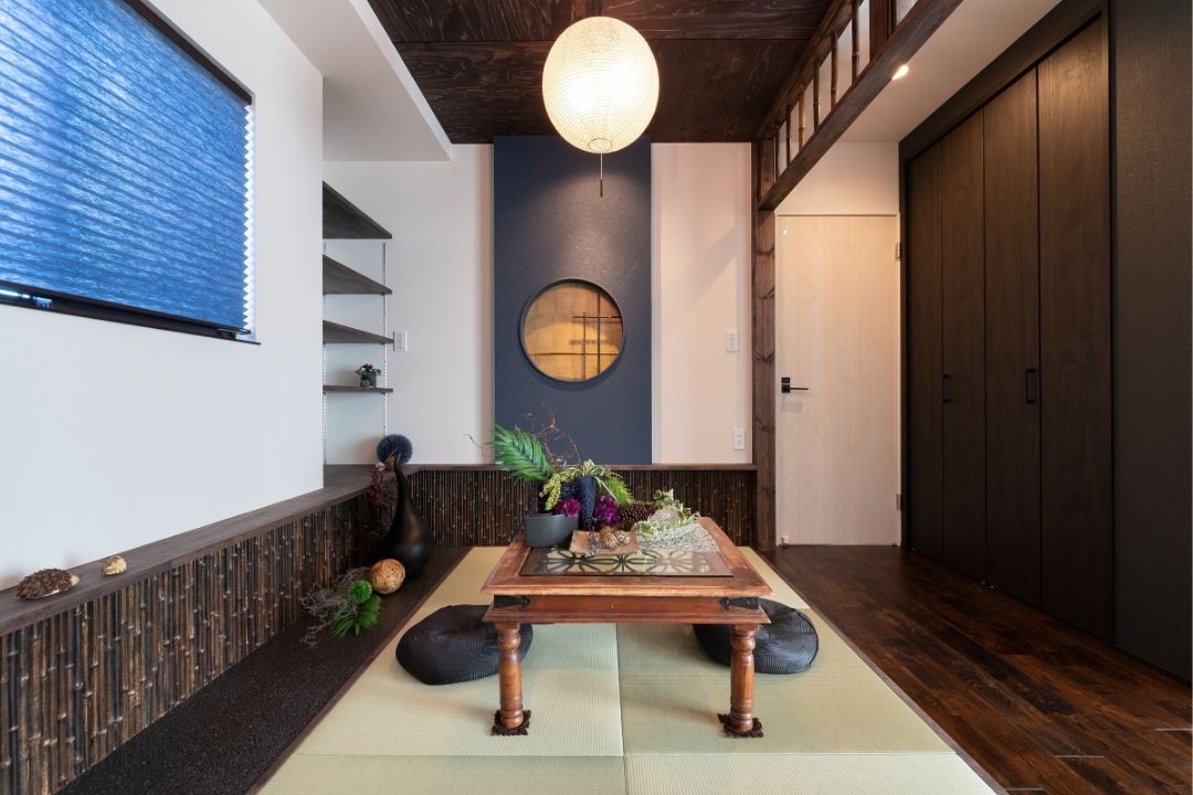 丸窓障子を採用した和室からは和敬清寂の精神を感じさせる。