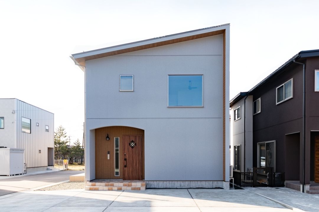 木目×片流れ×小窓のかわいい外観。