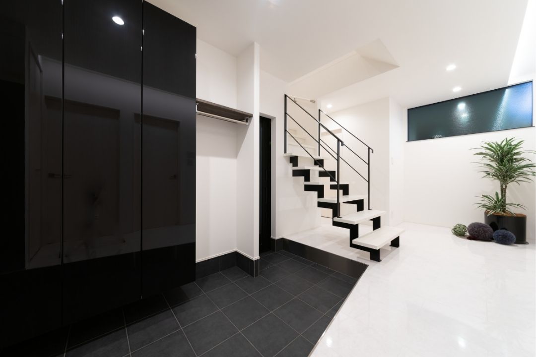 真っ白な鏡面仕上げの床がホテルのような高級感ある住まい。
