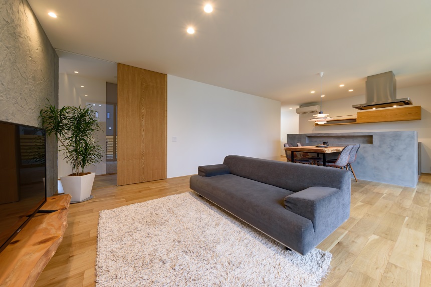 自然光を取り入れながらも、周りを気にせずゆっくりくつろげるリビング。
