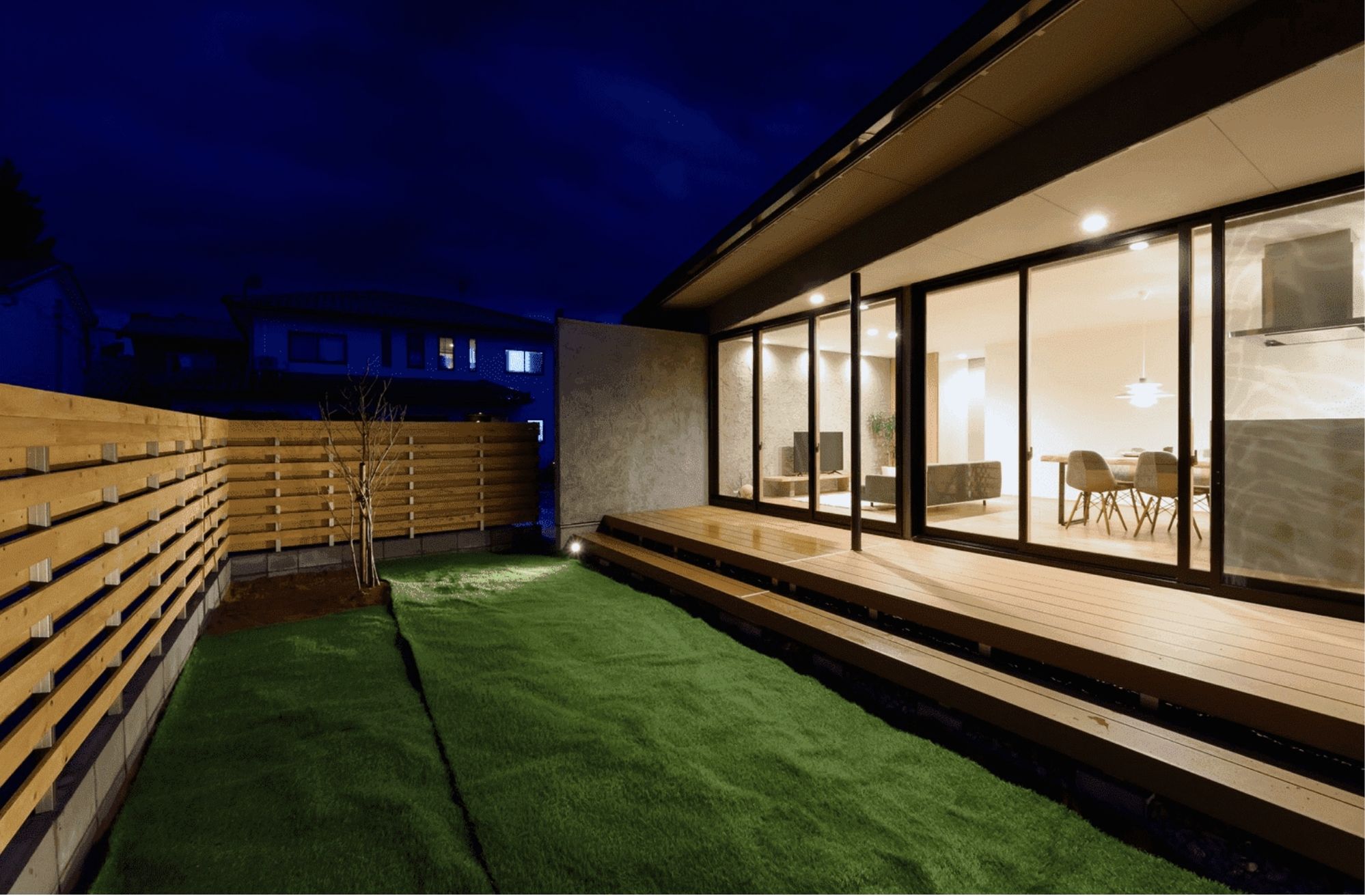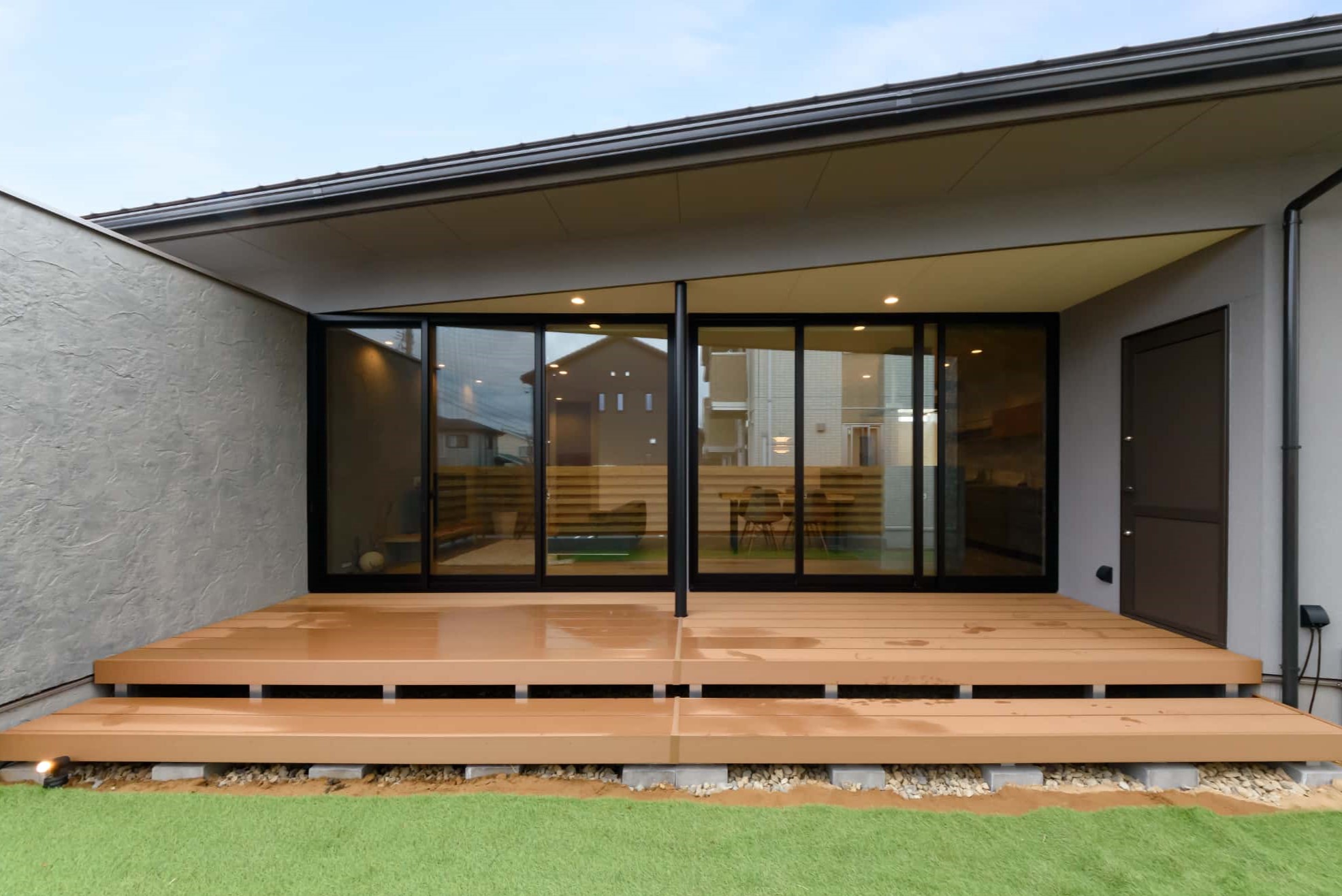 住まいの開放感を更に広げるアウトドアリビングなウッドデッキ。