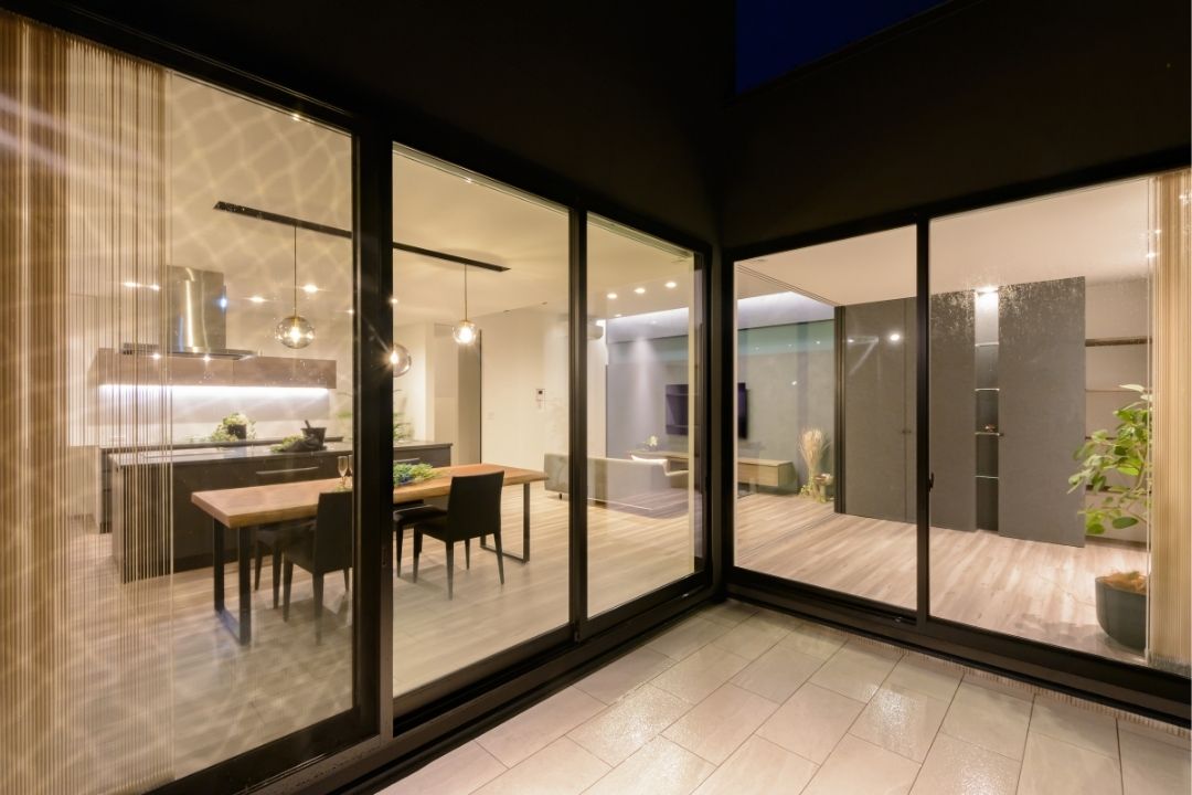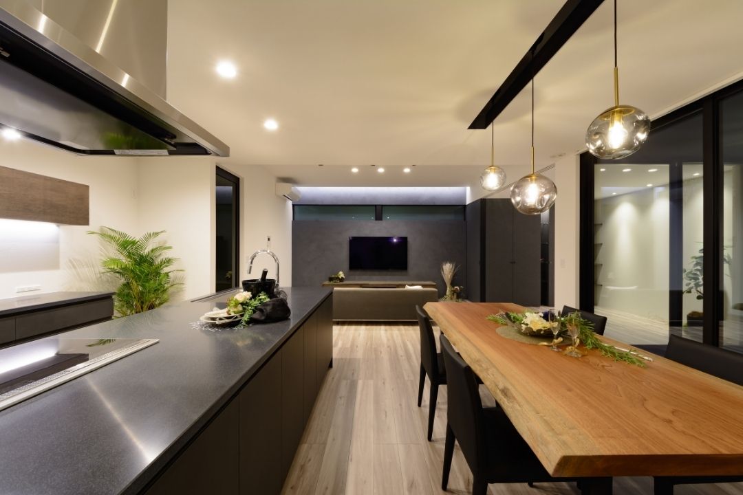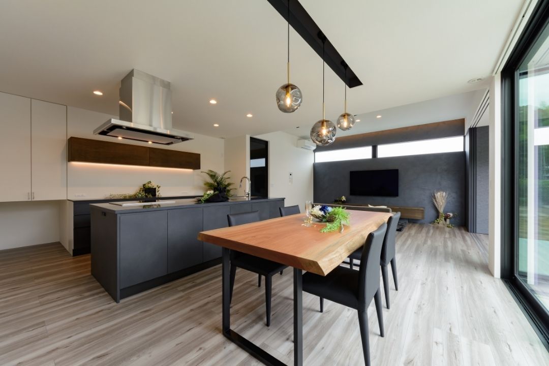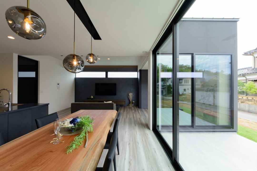 大開口サッシによりテラスと繋がりを感じられ、開放感と明るさを兼ね備えたLDK。