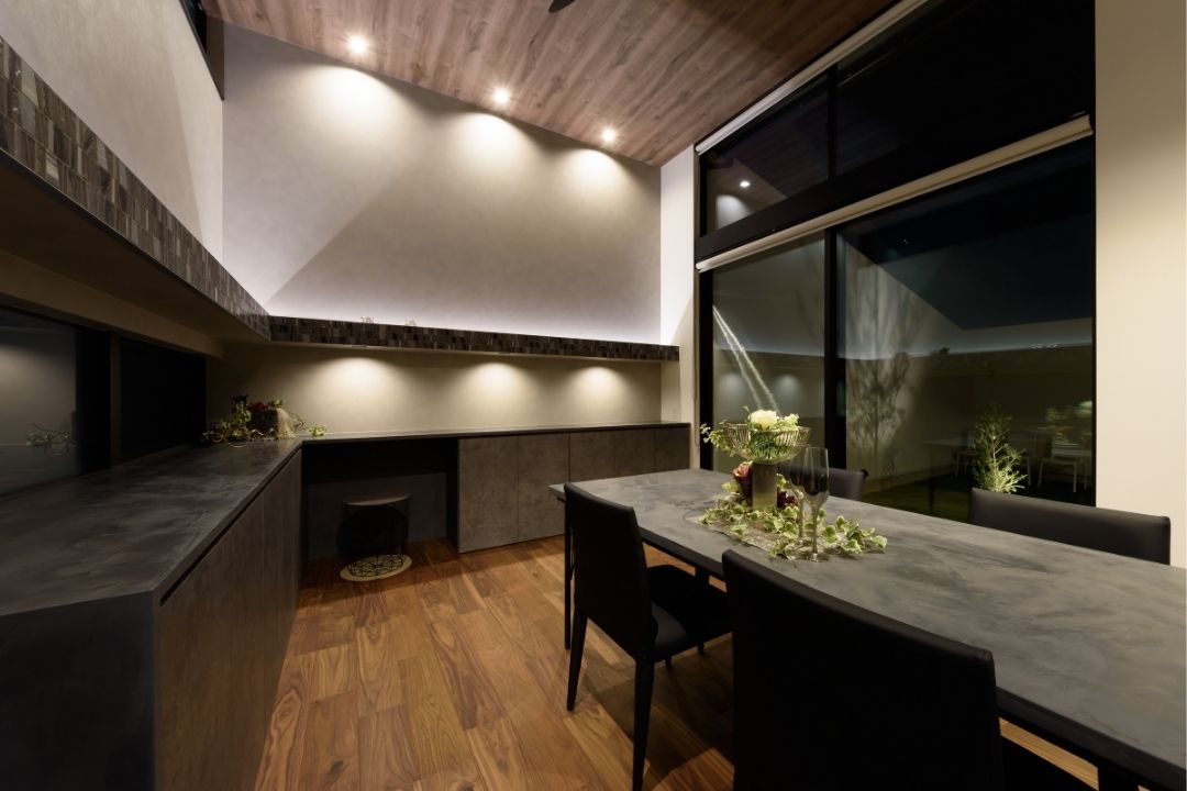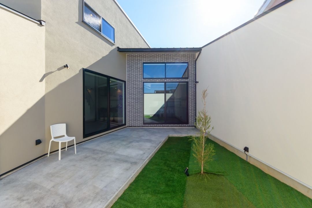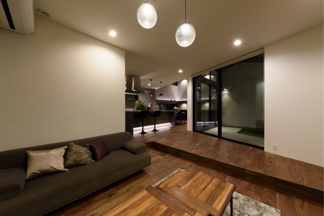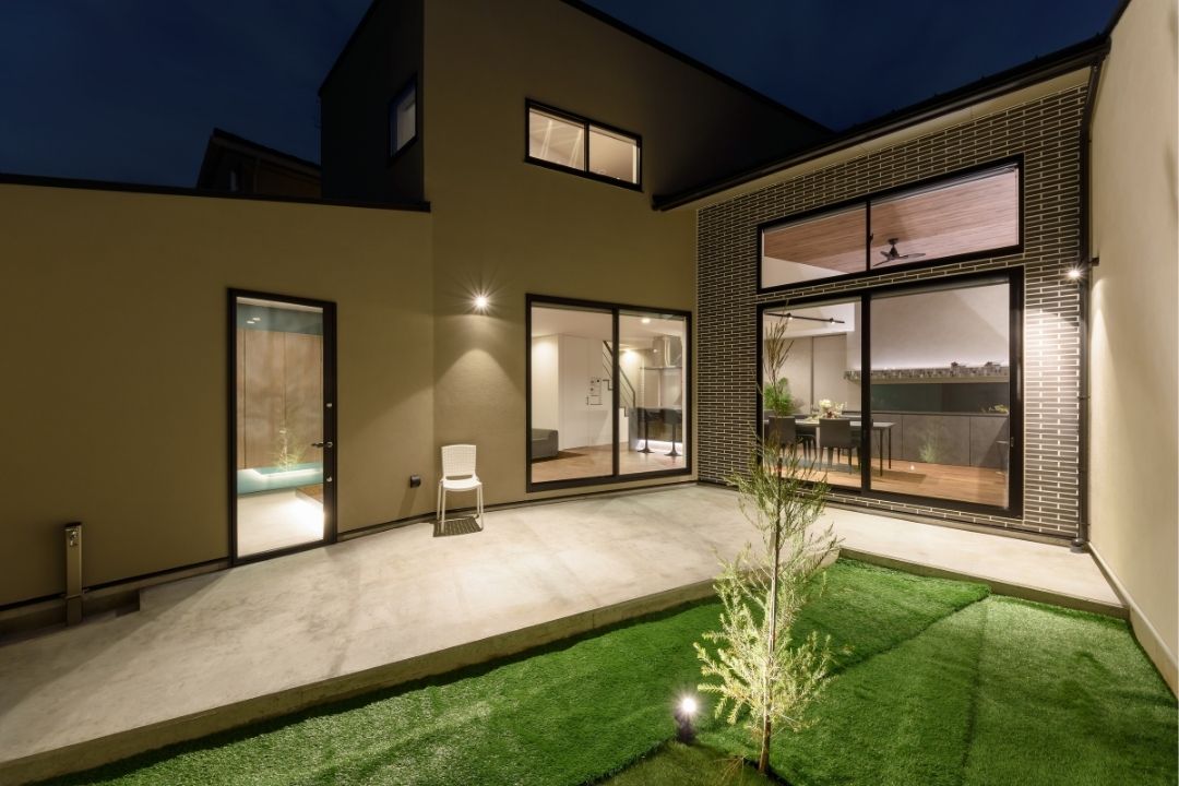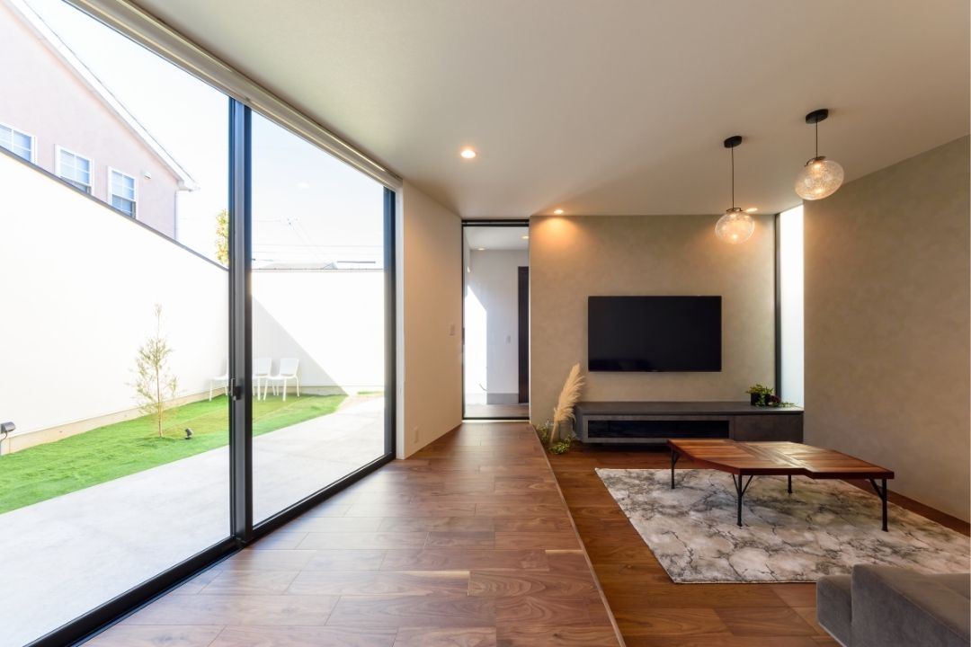 LDKから繋がる中庭は、道路側からの視線をカットし、プライベートな落ち着いた空間に。
