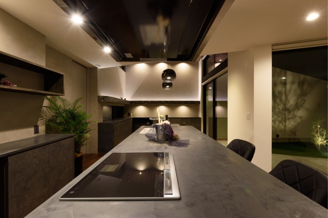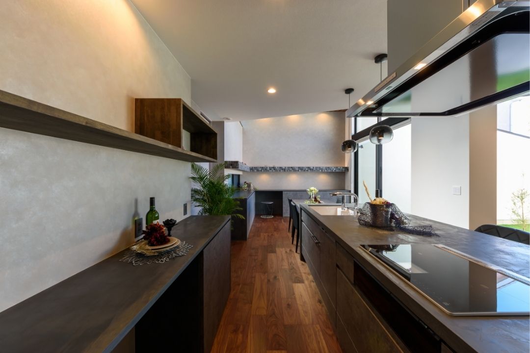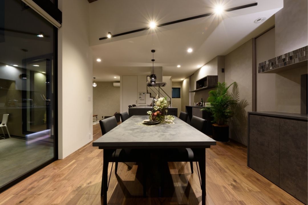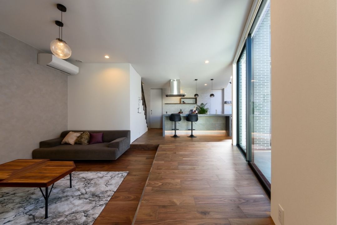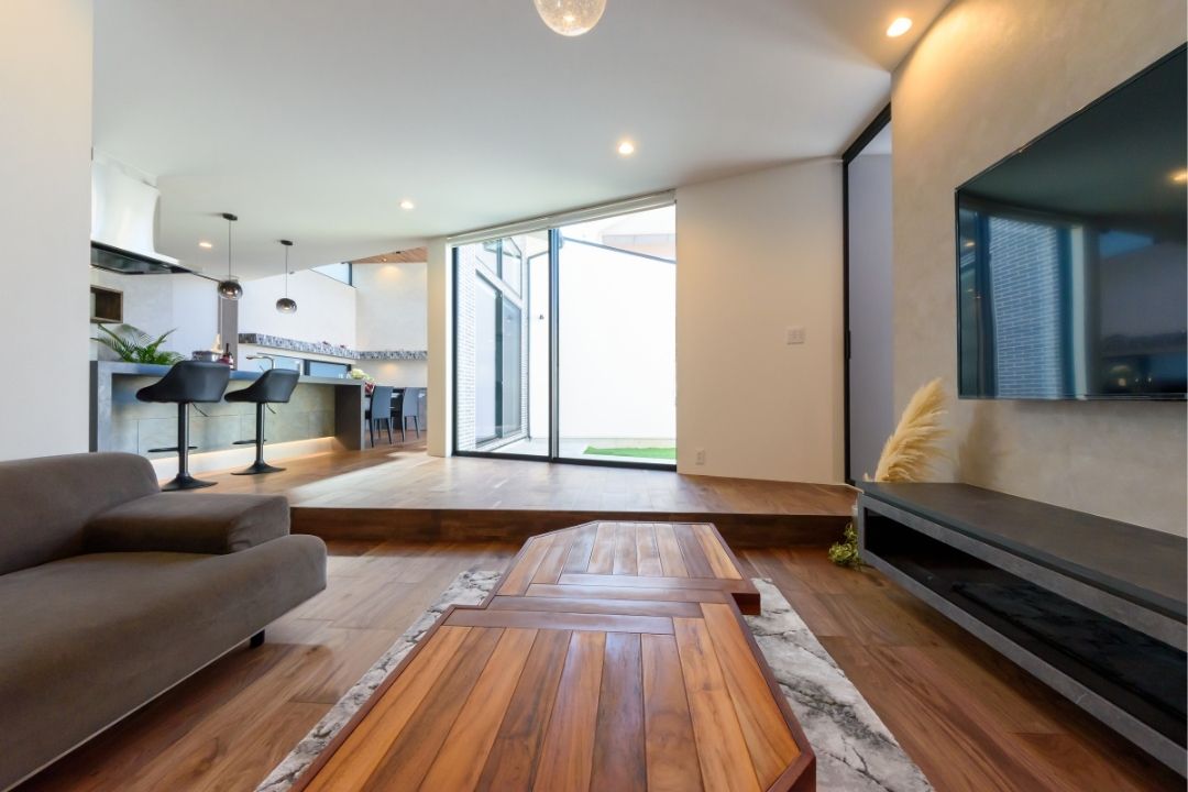 LDKから繋がる中庭は、道路側からの視線をカットし、プライベートな落ち着いた空間に。