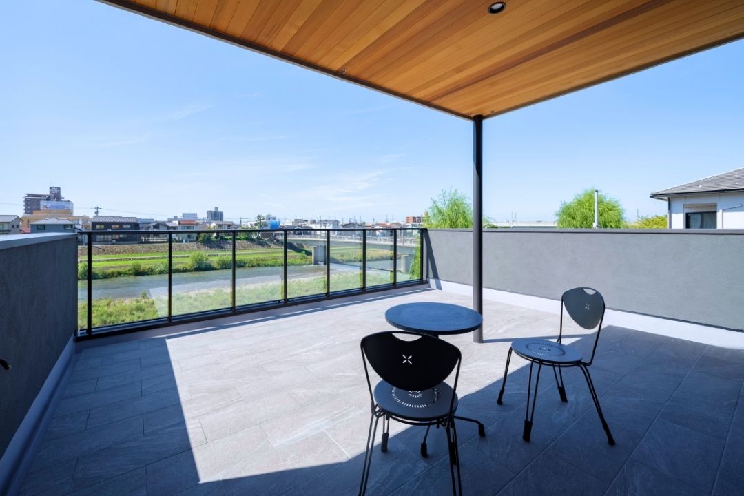 犀川を一望できる広々としたプライベートバルコニーで花火鑑賞やBBQを楽しむ贅沢な暮らし