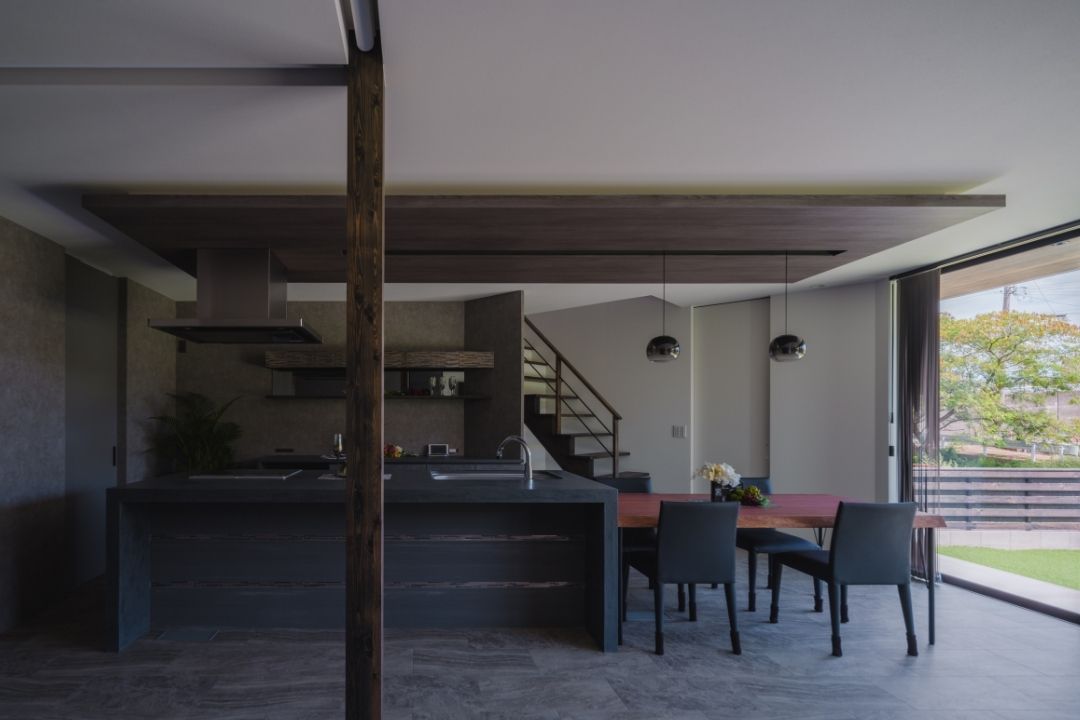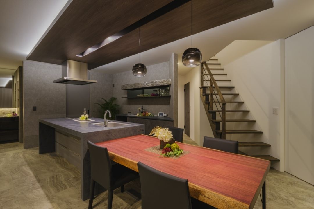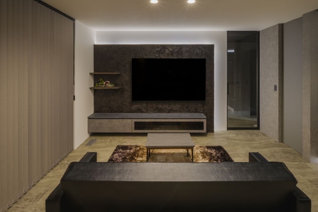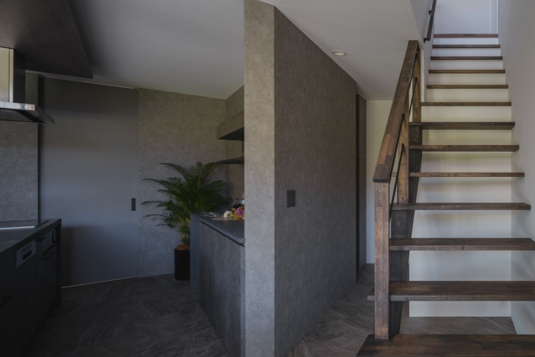 無機質×木目×グレーを基調とした室内空間。