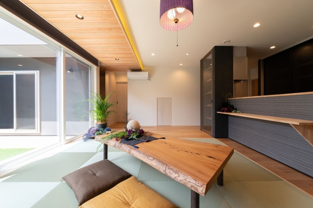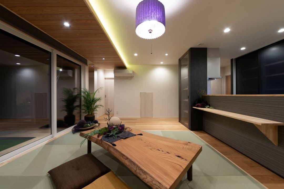 日本文化の象徴「和室」をリビングの真ん中に配置することで落ち着きと癒しの空間に。